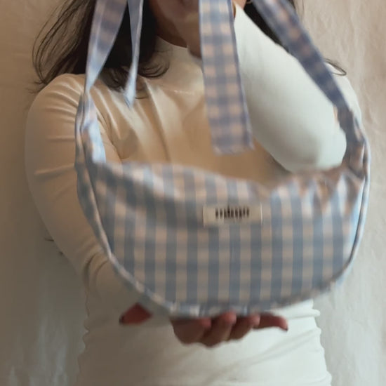 The Luna Sling Bag features bow shoulder straps, a secure zipper closure, and a divided inside pocket to keep your essentials organized. Perfect for daily wear, travel, markets, or as a thoughtful handmade gift.